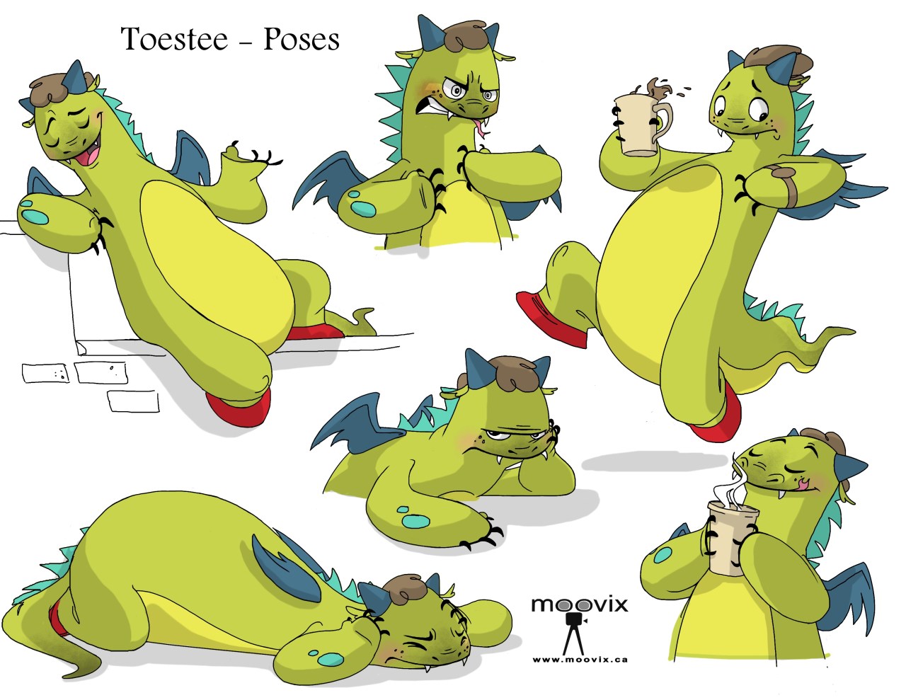 I have had the opportunity over the past few months to create a few different character designs and so I have started a new page on my site that will begin to hold them. For now I wanted to share with you a design I did for Moovix – Toestee the Dragon. This design did not end up being the final design used for animation but these drawings still give a nice peek into what is unseen in the final product – and I like the way they turned out. Doing character designs is both a blessing and a curse for me and highlights both strengths and weaknesses. I love the opportunity to explore a character – usually I only get to do this through movement in animation after the character has been designed – and so the chance to do this here through posing and design was fun. There is an openness at this stage that I love because nothing is defined yet, however, with that freedom comes the responsibility to also provide a character that can turn around and be both consistent, appealing, and easy to reproduce from all angles. This was as far as I went in the design process before I hopped over to supervise the animation from RME (Rudra Matsa Entertainment) in India on the 3 short episodes that would feature Toestee and his red socks!