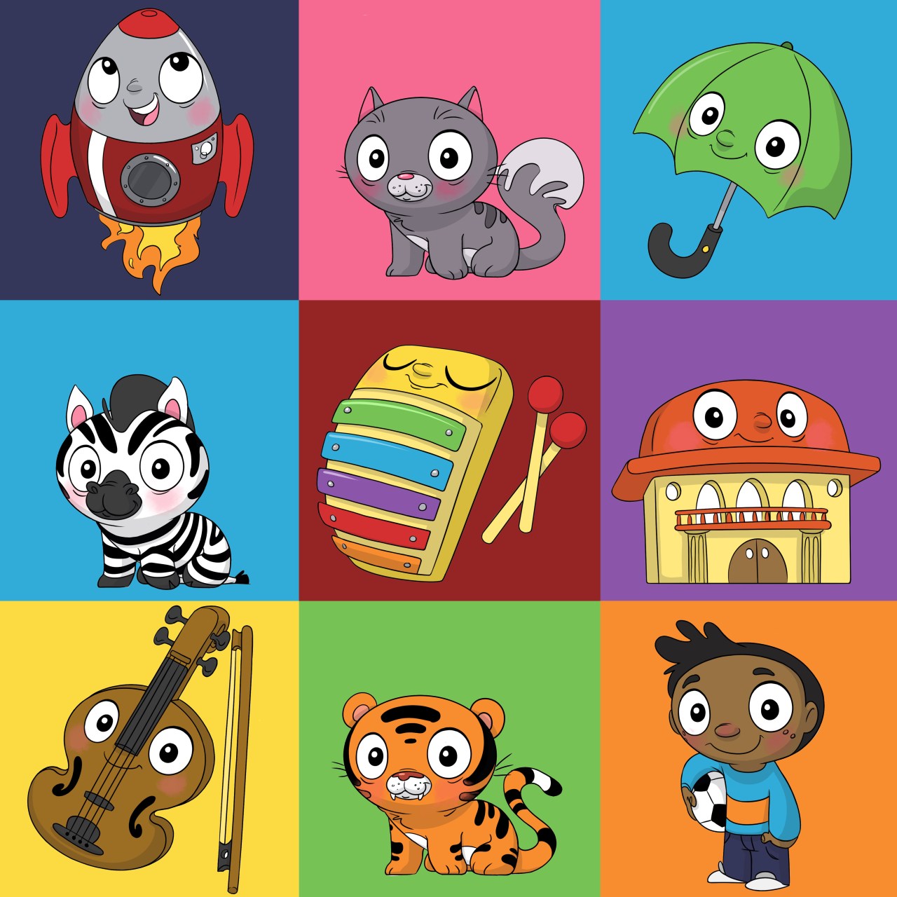 Here is another glimpse at some designs I drew for a children’s alphabet app. Though they were quick and fun to draw they gave me the challenge (especially with the human and animal characters) to try and design a simple body/head shape and then by only changing a few small details and colors to re-use the body and head design for different animals. These designs were going to be animated at a later date and so the ability to easily re-use and re-purpose one design for another with minimal change was desirable for the client. Here is how they turned out!